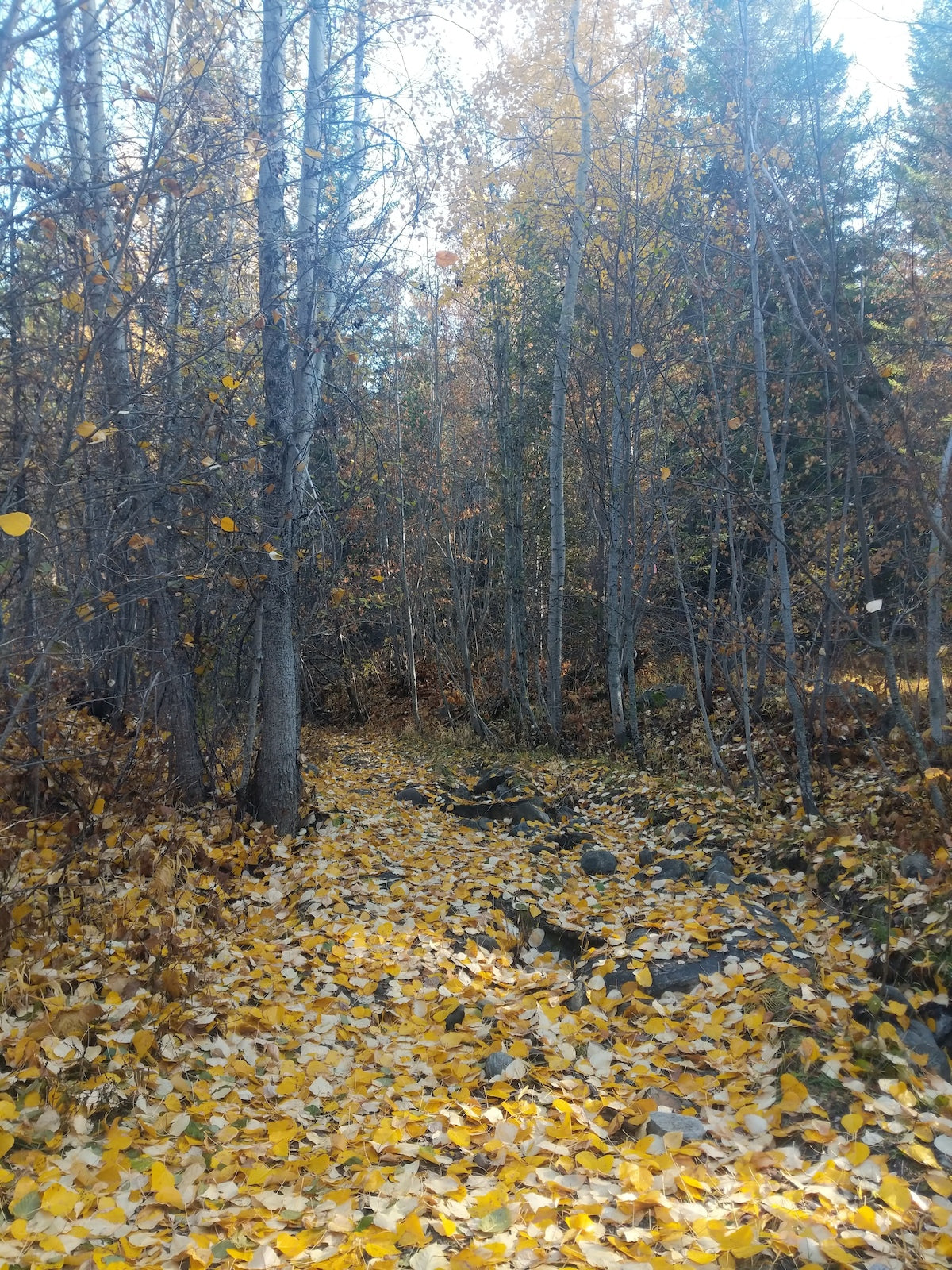 A rapid descent off of the KVR railbed, down into Lost Lake Trail with the choice to journey east or west afterwards.